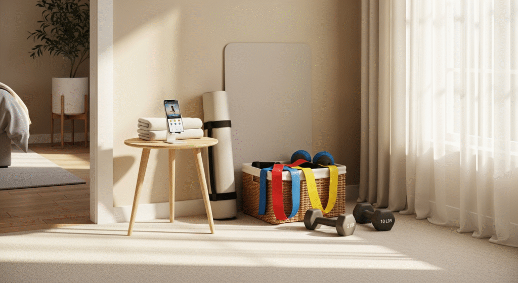 Motivation at home looks different than gym motivation. You won’t have other people working out around you. Create your own energy with a dedicated playlist, a timer app that keeps you accountable, or workout videos you follow along with. The goal is removing barriers, not creating perfect conditions.