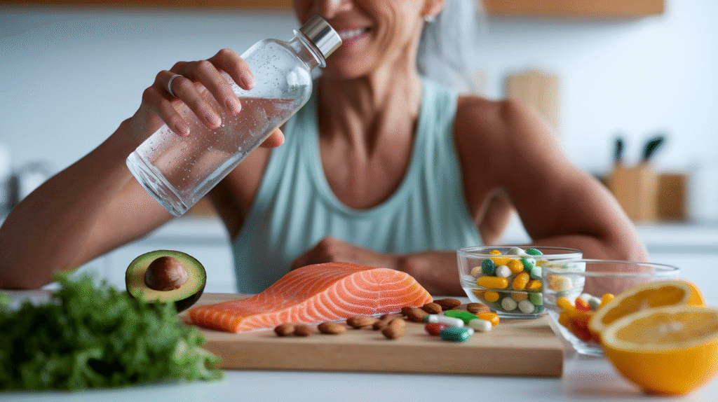 Water intake becomes more critical after 50 because your thirst mechanism becomes less sensitive. Dehydration impacts muscle recovery, performance, and even muscle protein synthesis.
