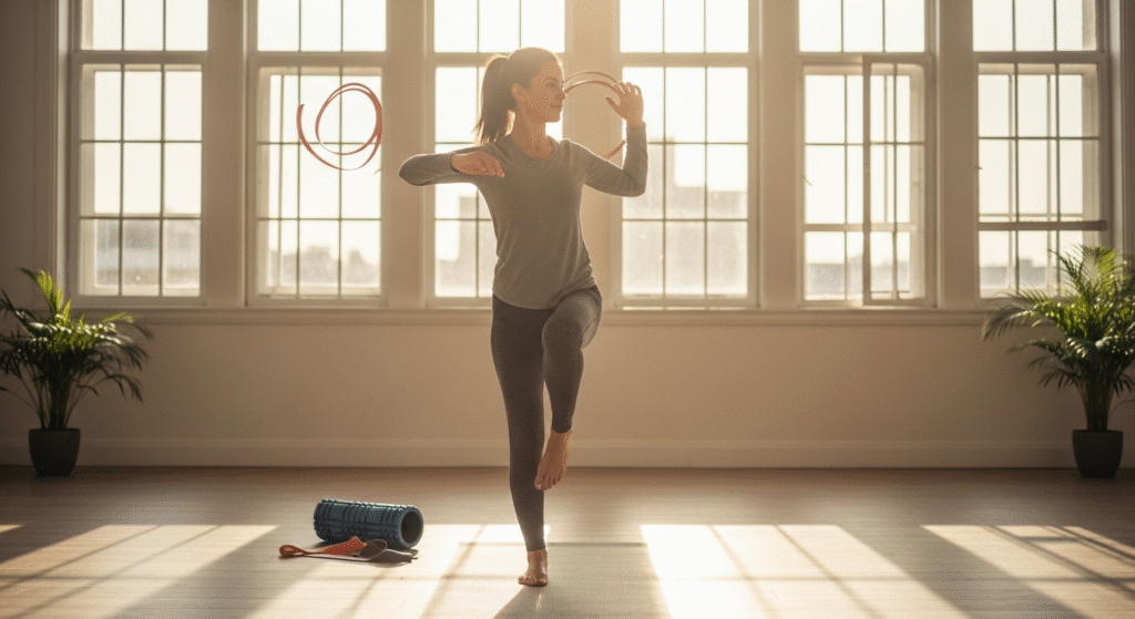 Joint mobility becomes increasingly important after 40. Spend extra time on areas that feel stiff—hips, shoulders, and spine typically need the most attention.